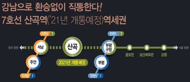 부평 캐슬&더샵 퍼스트는 우수한 교통 접근성이 보장될 예정입니다. 이미 공개된 바와 같이 지하철 7호선 산곡 역은 캐슬&더샵 퍼스트로부터 도보로 갈 수 있는 거리에 인접해 있습니다. 그래서 역세권 아파트라고 말하는 것입니다.